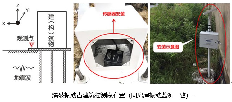 (3) 仪器安装:安装前,应对监测点及传感器进行统一编号。在古建筑物安装仪器时,安装要简洁,避免对古建筑物造成损伤。传感器在地基、砖、石结构安装时,应用石膏粉辅助安装,在木结构安装时,选择AB胶辅助安装,传感器应与测点紧密接触,传感器X(水平径向)指向爆心并水平放置。根据测点位置合理选择供电方式,仪器主机放进防护箱内,防护按照《混凝土结构后锚固技术规程》要求进行安装,抗拔力满足100kg要求;仪器安装后,设置参数进入工作模式,zui后将现场清理干净,多余的耗材应带离现场。