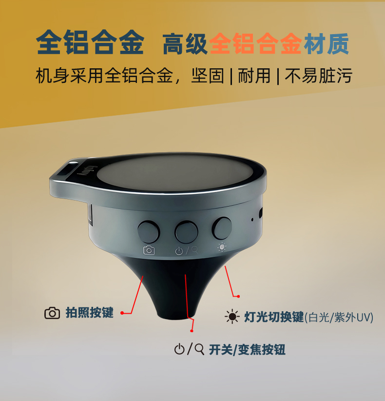 独特的漏斗设计,方便观察物体弯角等不规则的地方;轻巧机身,附赠专用收纳包和清洁布,方便户外或移动使用。