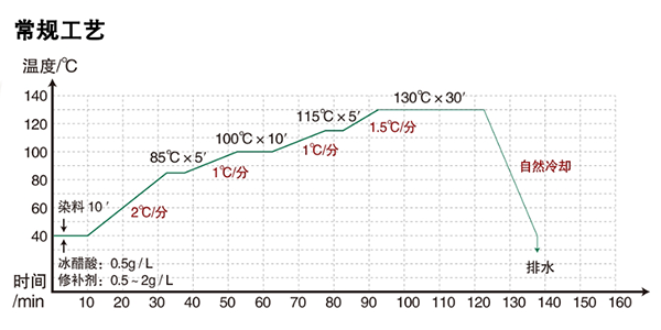 1.快速匀染性,加快染色速度,提高染色上染率,适用于涤纶快速染色。