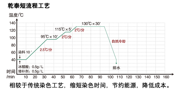 乾泰化工涤纶速染剂QT-1218针对涤纶织物分散染料染色场景研发,具备优良的促染性能与移染性,可替代多种传统染色助剂,实现“一剂多效”的应用价值;能显著加快分散染料的染色速度,提升染料上染率,有效减少染液中未上染染料的残留量,降低染料损耗;可克服涤纶织物染色时易出现的色花、色渍、匀染性差等常见疵病,同时对已产生的色花、色渍问题具有修补作用,大幅提升染品合格率;通过缩短染色时间(相较于常规工艺)、降低能源消耗,减少染色废水污染物排放,兼顾生产效率与环保要求。