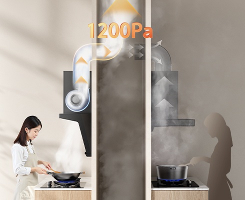名气吸油烟机搭载了如“鲲鹏瞬吸科技”等技术,能够实现23m³/min的大风量吸排油烟。