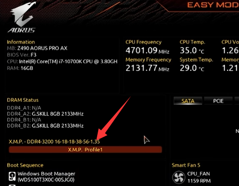 3、进入bios后,找到“xmp”功能,点击将它开启。