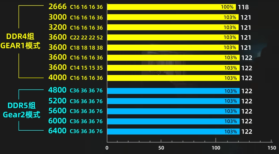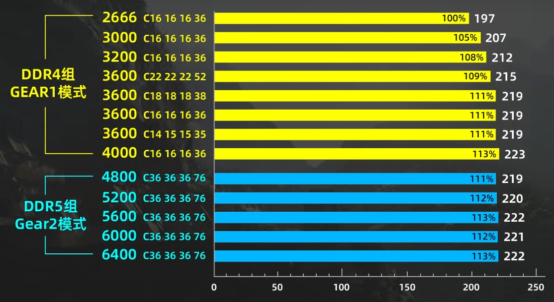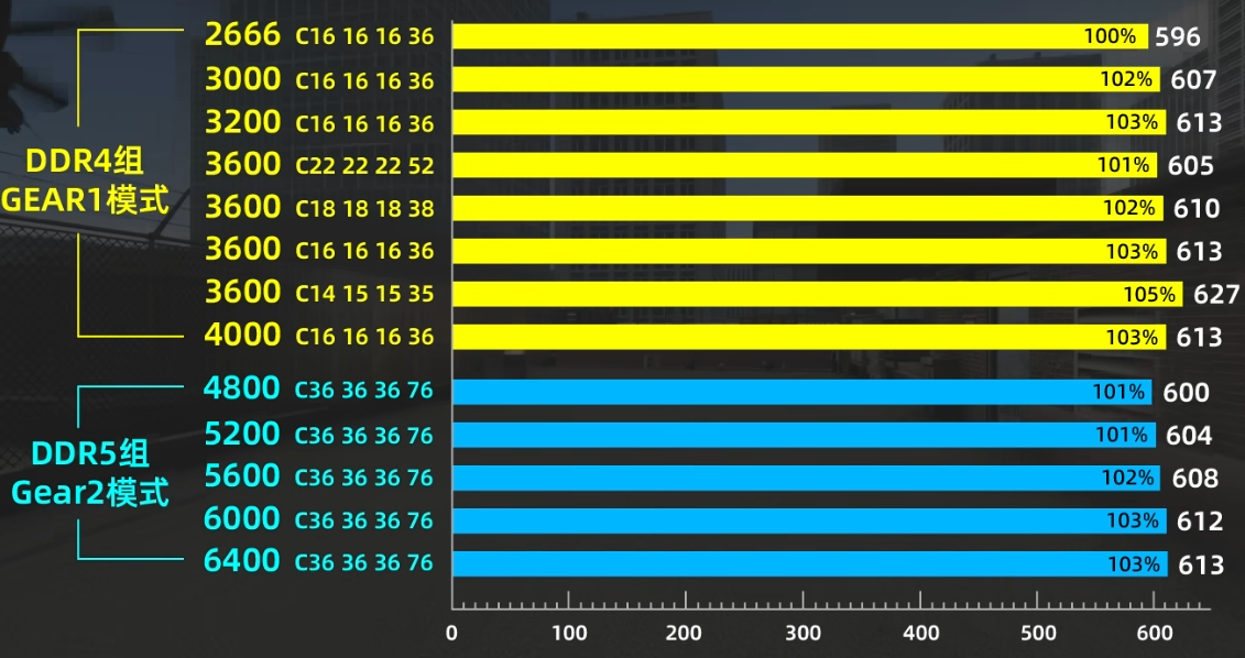 可以看到,ddr5相比ddr4,在游戏帧数上的提升很小,仅有部分游戏有较大提升。