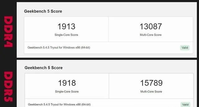 在生产力跑分软件中,ddr5的提升相比ddr4也很小。