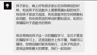 多位家长反映,核桃编程的电话营销行为已经严重干扰了他们的正常生活。"咨询老师为了推销课程,经常大半夜打电话、发微信,甚至快凌晨12点了还在发微信,"一位家长向记者出示了深夜接近午夜时分收到的推销信息截图。