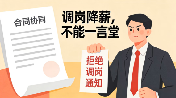 简单来说,劳动合同是你和公司自愿签订的,岗位、工资是核心内容,任何一方都不能“一言堂”。公司要调岗降薪,必须主动与你协商,征得你同意后,双方签订书面变更协议,才算合法;未协商、未签字,公司单方面通知调岗降薪,均属于违法,你有权直接拒绝!