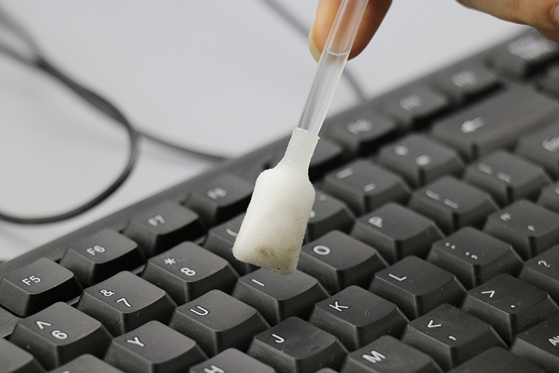 与直接使用IPA液体清洁相比,IPA清洁棉签的设计使其能够控制IPA液体的使用量,从而更有效地去除污渍,同时减少液体溅出和误触的风险。