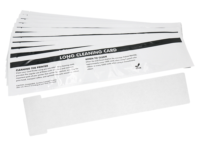 3、长T型清洁卡(326mm),粘尘卡用于清洁打印机内部的传输路径、读卡槽、打印头区域等关键部位,从而恢复读卡设备和打印头的最佳性能,保证打印质量和读卡准确性。