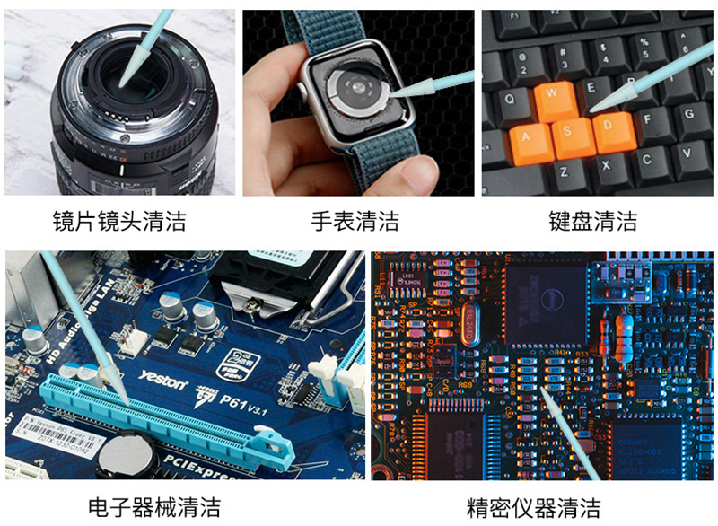 工业无尘净化棉签擦拭棒因其无尘设计、精细擦拭能力、高吸收性及防静电处理等特点,广泛应用于多个高精度、高洁净度要求的行业。以下是其主要应用场景: