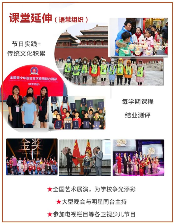 每年还会邀请语言艺术家、联合网络、电视媒体,组织各种丰富多彩的展演、课外实践、营训活动,给孩子们搭建绚丽多彩的舞台,让孩子们学有余则演,在实践中历练,在快乐中成长,在成长中蜕变!