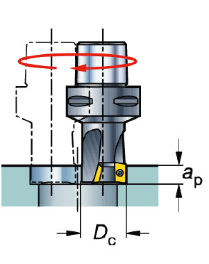 在对大型零件进行面铣加工时,都是使用直径较小的铣刀,这就为提高生产率留下了很大余地。在理想情况下,铣刀应有70%的切削刃参与切削。 用铣刀铣孔时,刀具尺寸变得尤为重要。相对于孔径而言,铣刀的直径太小,则加工时可能会在孔的中心形成 一个料芯。当料芯落下时,可能会损坏工件或刀具。铣刀直径过大,则会损 坏刀具本身和工件,因为铣刀不在中心切削,可能会在刀具底部发生碰撞。
