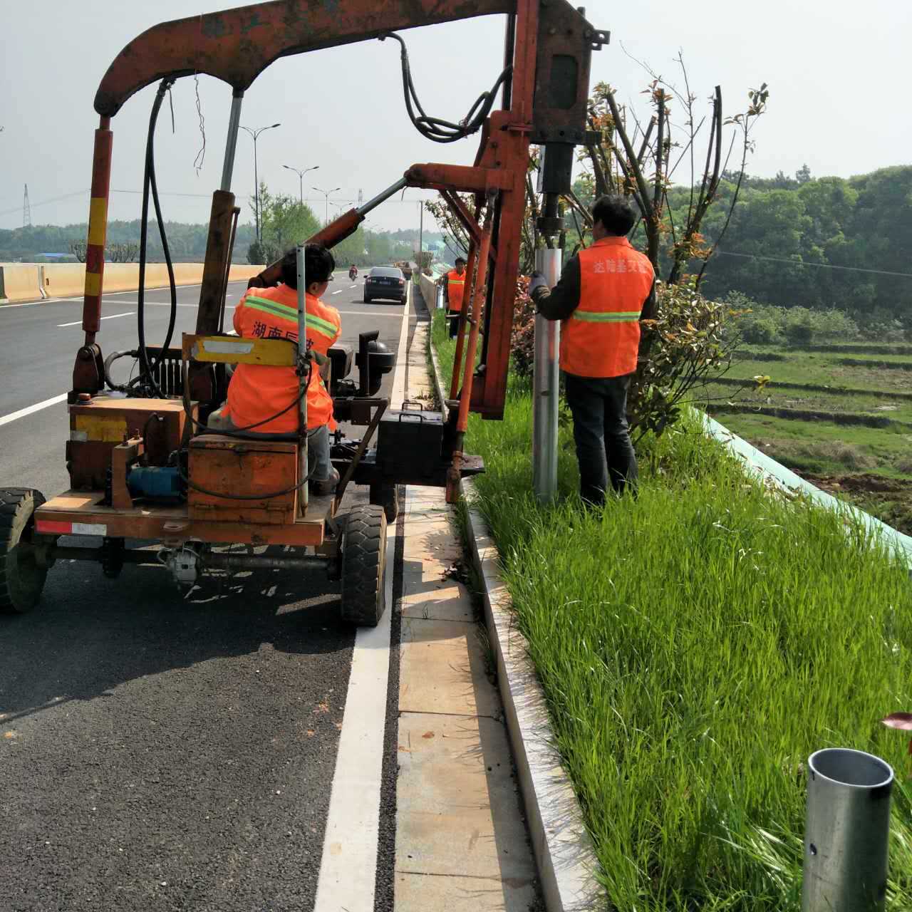 公路波形护栏立柱的安装