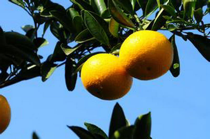 叶片偶有细微斑点现象,小枝梢的形成层常显淡红色。果实圆球形,平均单果重350-400克左右,果面光滑,深橙色,果皮宽皮厚,囊瓣11~12瓣;可食率83.39/6,果汁率54.8%,可溶性固形物11.9%,糖含量9.07克/100毫升,酸含量1.07克/100毫升。雄蕊退化,花粉败育,一般坐果率很低,产量也不高。