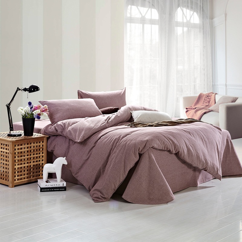 纯棉面料的四件套,具有吸湿吸水透气性比较好,且很柔软,不伤害肌肤等特点。购买这一类面料应当特别注意其质地是否紧密,图案的完整与否,并需要弄清楚其缩水率等情况。这类四件套面料对于知识分子、白领等较为合适。