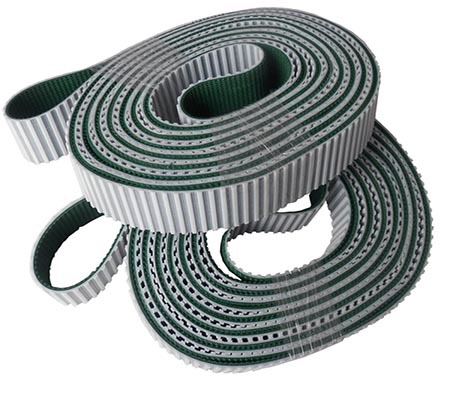 聚氨酯PU同步带由进口热塑聚氨酯材料制成,具有较高抗磨损能力,各种类型钢丝芯保证其在传动中仍然保持良好的运动能力,生产公差小。生产过程中在齿面和/或齿背加以一层尼龙以保证在特殊应用中的运行特殊性不变,还可在皮带背面加厚一层聚氨酯以防止腐蚀或高负载。