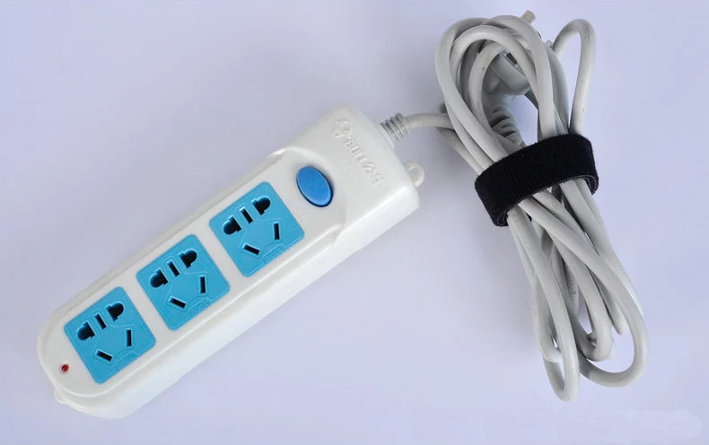 电源插座线太长了,总不能剪断来用吧吧(这样很危险的喔),这下魔术贴绑带可以用得上了:
