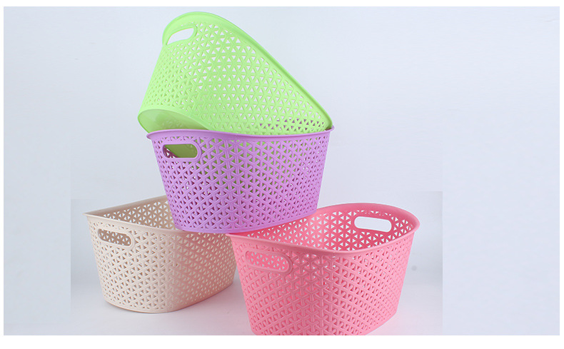 方形收纳筐,平时收纳简洁大方,长方体的设计省空间,简单大方,很符合家庭的收纳习惯,凭证的棱角个人简洁感,上面的镂空花纹又给时尚的感受。方形的设计是稳定简洁大方的体现,在生活中有棱角的东西就给人安全感,这种方形的设计,省空间,坎坷还让人赏心悦目。