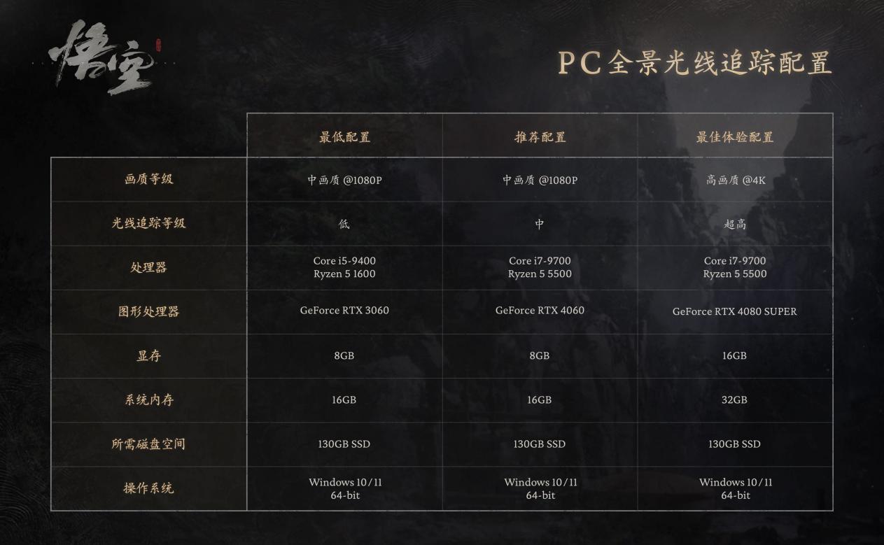 游戏科学在8月13日就已经上线了《黑神话:悟空 性能测试工具》,相信很多小伙伴通过了九九八十一难中的第一难。当然,毕竟是中国第一款真正意义3A的游戏大作,想要畅想西游行还是需要不俗的装备。游戏科学《黑神话:悟空》早就在官网公布了PC版使用全景光线追踪配置的要求。