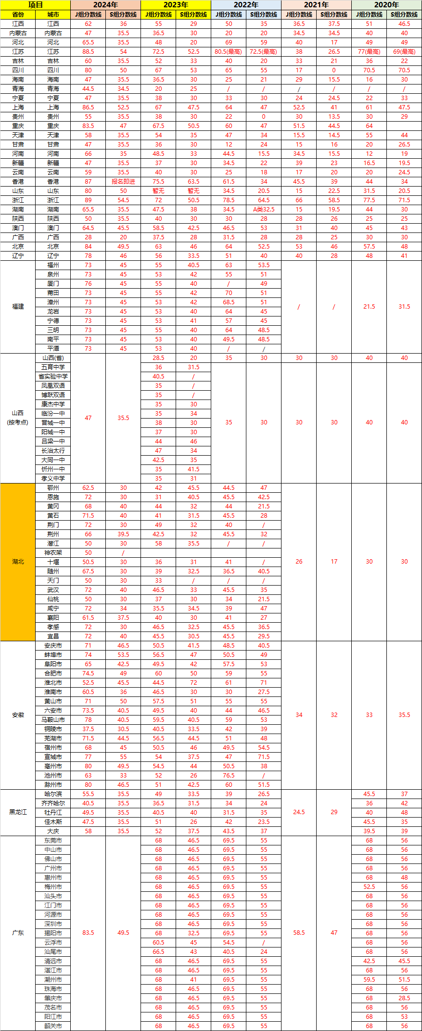 河南省的分数线则呈现出另一种趋势:J组66分,较去年提高了20分。这反映出河南省组织单位在争取更多参赛名额方面做出了努力,使得更多的学生有机会参与进来。