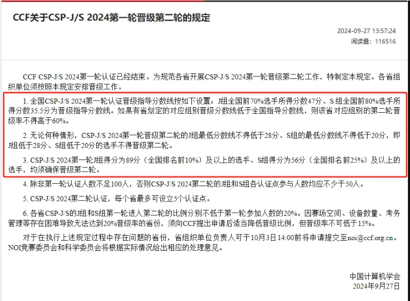 CSP-J/S 2024第二轮晋级规则