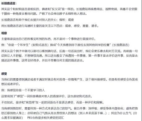 长颈鹿语言的沟通技巧:重点在于“观察而不评判”——关注事实而不是个人评价。