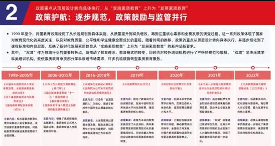 近年来,国家教育政策从长远的规划到具体的实施,从质量提升到减负增效,再到注重核心素养和全面发展,总体呈现积极引导与规范管理并行的趋势,积极推动素质教育的发展。特别是“双减”政策的出台,不仅推动了教育理念和教育模式的转变,尤其“1+N”政策制度体系的逐步完善,还对校外培训机构进行了严格的规范和限制,为行业的健康有序发展提供了有力保障。报告指出,在政策的推动下,素质教育行业的市场规模持续扩大,预计到2025年将突破六千亿元。其中,编程教育作为科技项目的典型代表,正逐步成为面向人工智能时代的教育刚需,迈入黄金发展期,有望成为素质教育领域的最大增量市场。