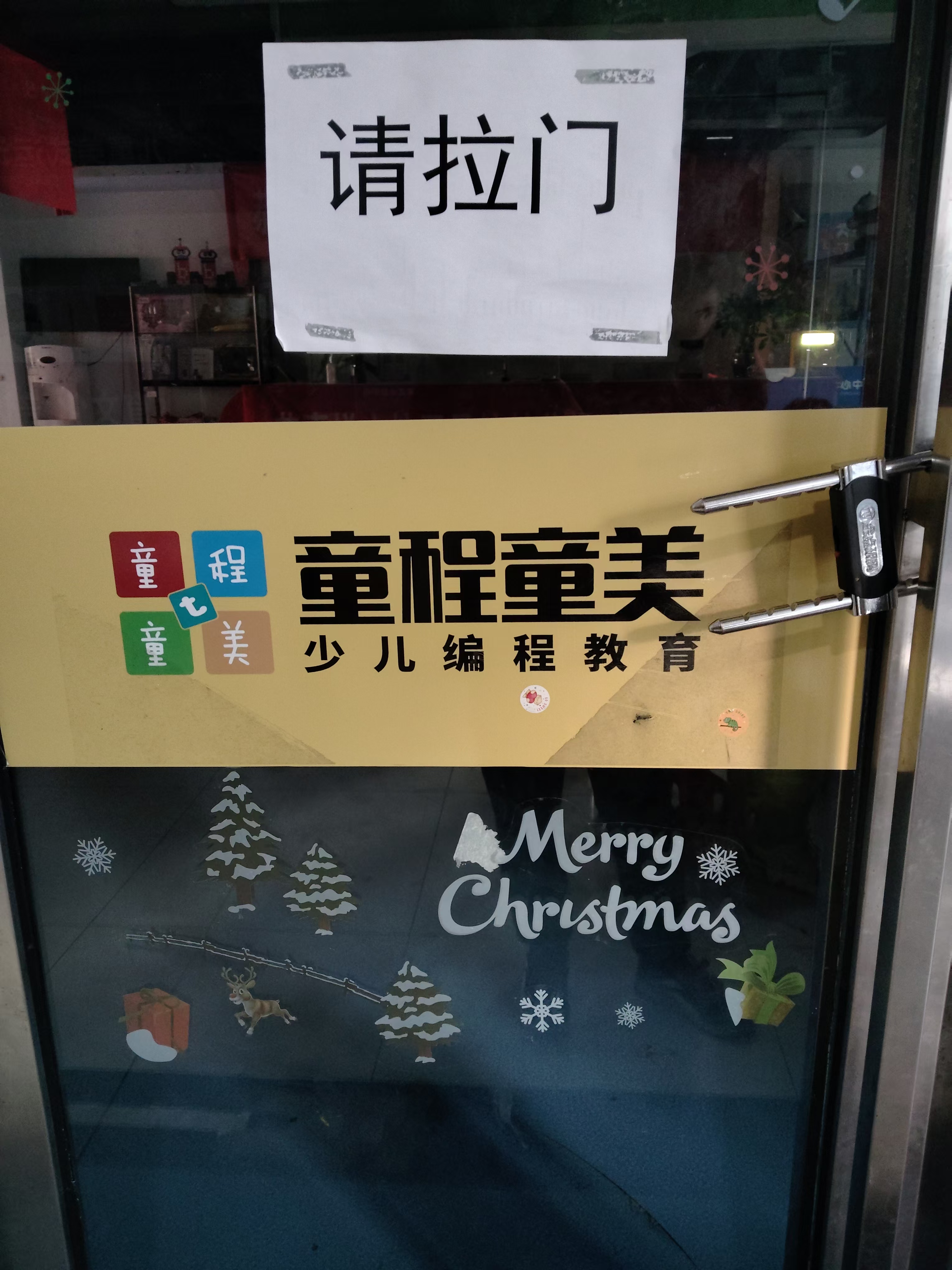 当天下午,记者在童程童美利港银河广场校区看到,培训机构大门紧闭,门口有社区工作人员负责对各个家长反映的课程、学费进行登记。该工作人员称,目前科技局已经在联系机构相关负责人。