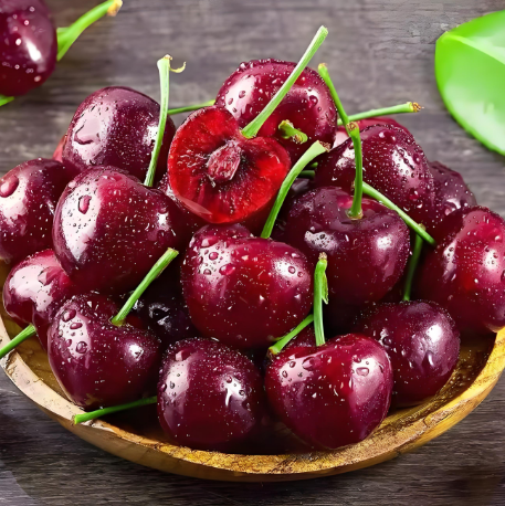 果实较大、颜色鲜艳、汁水丰富、甘甜可口,一般呈心形或宽心脏形,皮厚耐运输。甜樱桃起源于欧洲,16世纪开始正式被栽培,18世纪初引入美国栽培,19世纪70年代开始在我国栽培,目前在我国山东烟台、辽宁大连、北京、天津等地均有栽培。