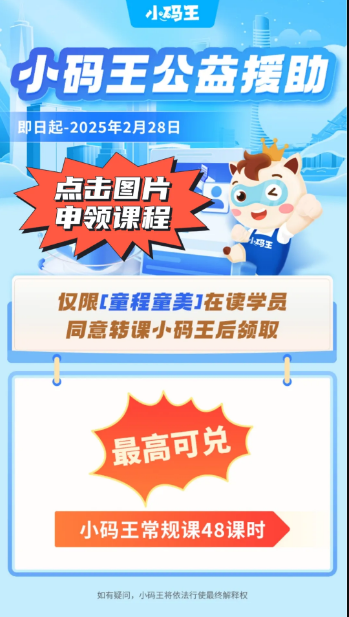 特别说明: 小码王与童程童美之间不存在任何商业合作关系,本次赠课活动完全基于公益目的。