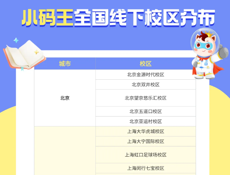作为一家从创业开始就秉持“唯有爱与信任不可辜负”价值观的企业,小码王深刻理解每位家长对孩子教育的重视、对孩子成长的渴望,以及对受托机构沉甸甸的信任。因此,我们始终致力于用科学的课程体系、专业的师资、以及沉浸的学习环境,激发每一个孩子的创造力与潜能。而这份坚持,正是我们九年以来能够服务好小码王在读学员的稳定基石。我们也曾成功帮助过包括贝尔编程和神奇科学家在内的停课机构的学生,平稳过渡并继续他们的编程探索之旅。