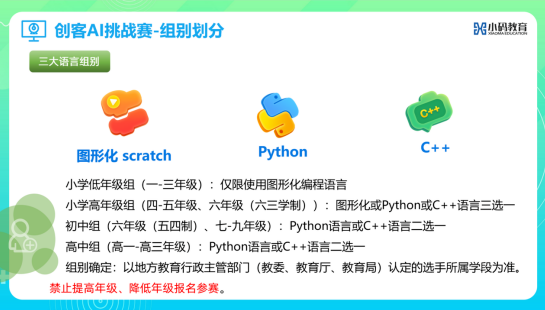 小码王作为技术支持单位,凭借在编程教育领域的丰富专业经验,全程深度参与其中,为竞赛提供了稳定可靠的线上竞赛平台。该平台不仅具备强大的数据处理能力,能够承载大量学生同时在线编程,确保了整个编程竞赛过程的顺畅运行,还能够实时监控参赛选手的编程状态,确保竞赛的公平性和顺利进行。此外,小码王自研的赛事平台还配置了图形化编程、Python、C++等多种编程语言的在线编译功能,无需额外下载其他编程工具,使用更加便捷高效。