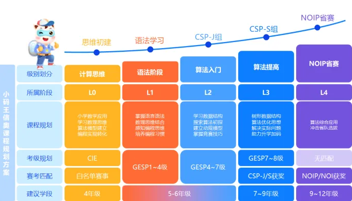 此外,CCF 于 2025 年 2 月 13 日发布年龄要求,「报名参加 CSP-J/S 的被认证者需在当年 9 月 1 日(不含)需满 12 周岁」,这与小码王信奥课程规划不谋而合。
