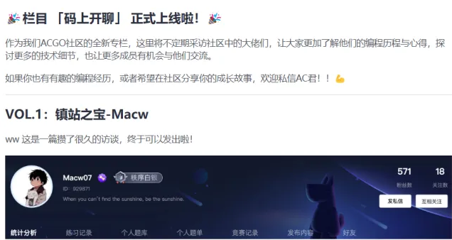 在 ACGO 社区平台上,很多学生都展现出了令人欣喜的积极态度。他们乐于分享所学、所知、所感,这种分享精神不仅丰富了社区的知识宝库,还营造了浓厚的学习氛围。