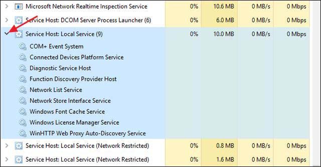 如果你使用的是Windows 10或Windows 11,进程将按全名显示在任务管理器的“进程”选项卡上。如果一个进程充当多个服务的主机,你可以通过简单地扩展该进程来查看这些服务。这使得识别哪些服务属于服务主机进程的每个实例变得非常容易。