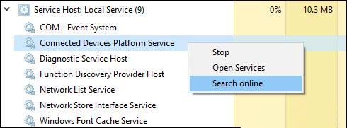 你可以右键单击任何单个服务以停止该服务,在“服务”控制面板应用程序中查看该服务,甚至在线搜索有关该服务的信息。