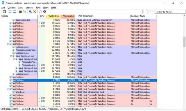 作为其Sysinternals系列的一部分,微软还提供了一个出色的高级工具来处理流程。只需下载Process Explorer并运行它,它是一个可移植的应用程序,因此无需安装。Process Explorer提供了各种高级功能。