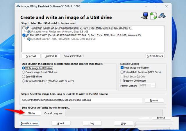 提示:将MemTest86映像写入U盘将擦除其内容。请确保先备份U盘上的所有重要文件。