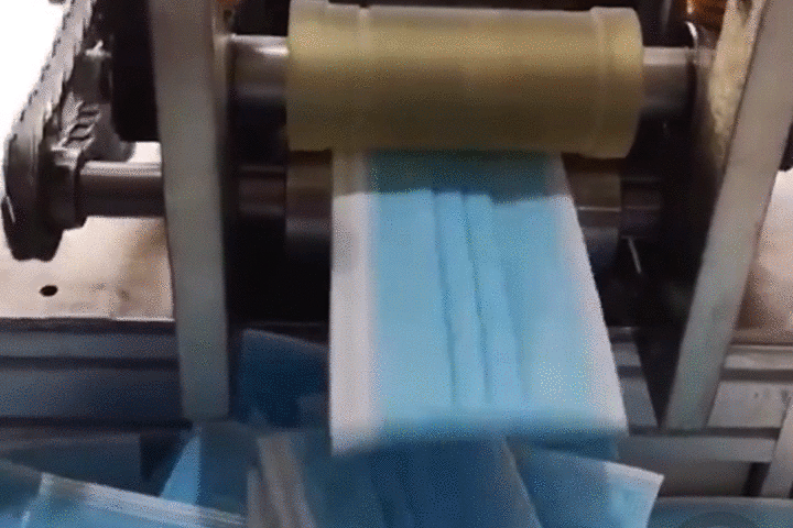 医用外科口罩既然需要三层无纺布,那么生产的第一个步骤当然是将这三层无纺布缝合起来啦!虽然说是“缝合”,但这个过程并不需要用到针线,针线缝合反而会导致“漏气”从而降低防护效果。因为无纺布其实是化纤成分,具有热熔性,因此机器可以把它们用高温“焊接”起来。