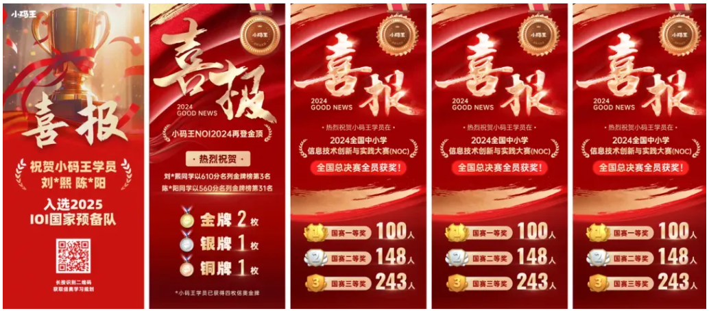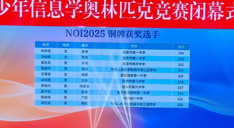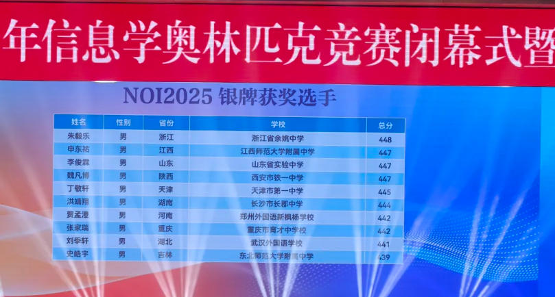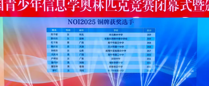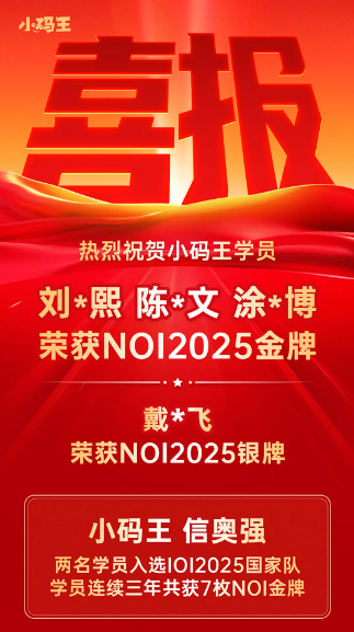 本次竞赛有来自32个省市的522名选手参赛,其中338名正式选手。50名选手斩获金牌,直接入选国家集训队并获得保送清北的资格! 152名选手获得银牌,可享受强基计划破格入围资格;85名选手获得铜牌。(小码王学员在本次CCF NOI2025斩获3金1银)
