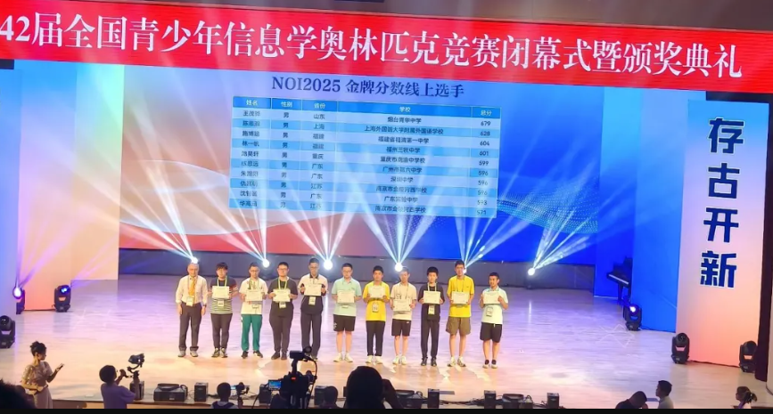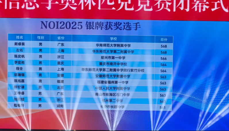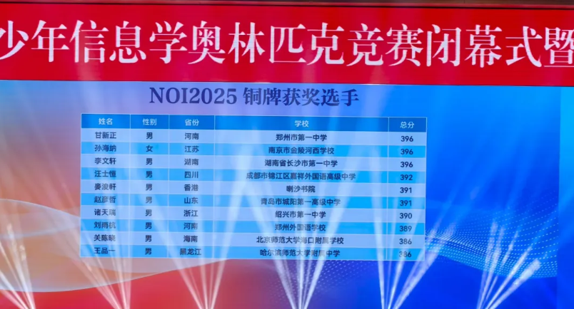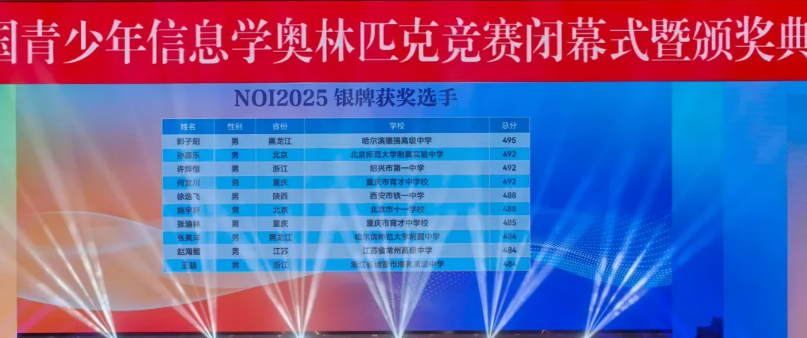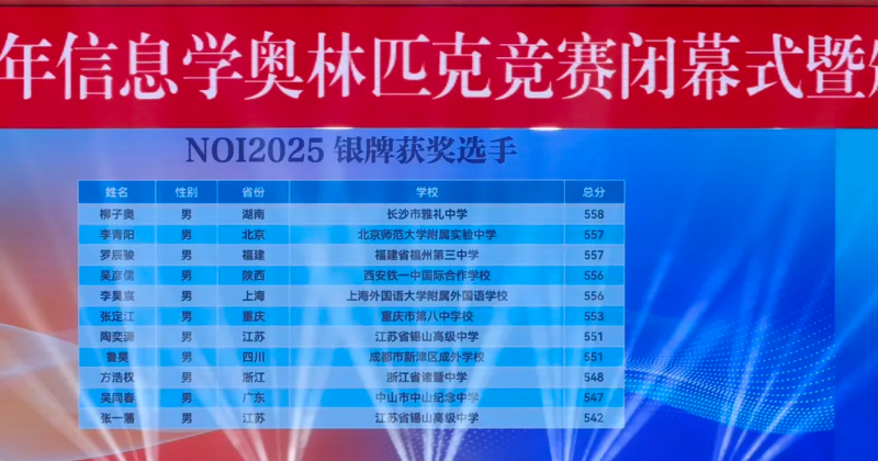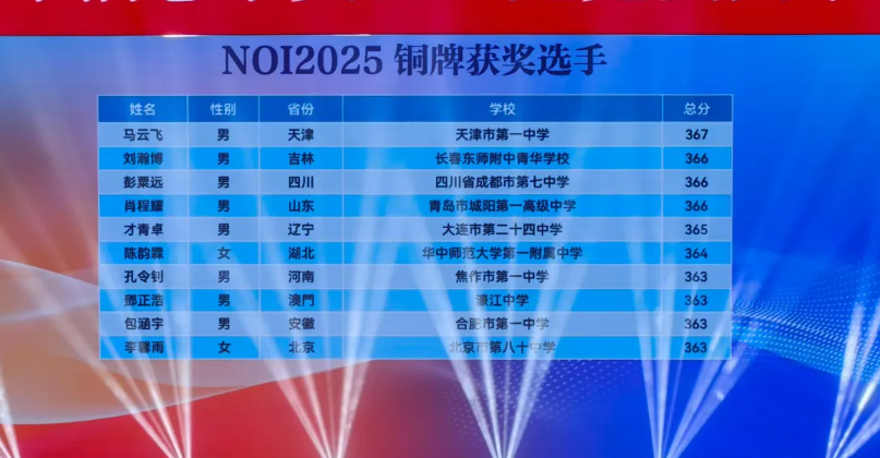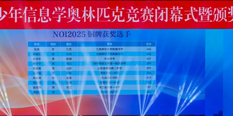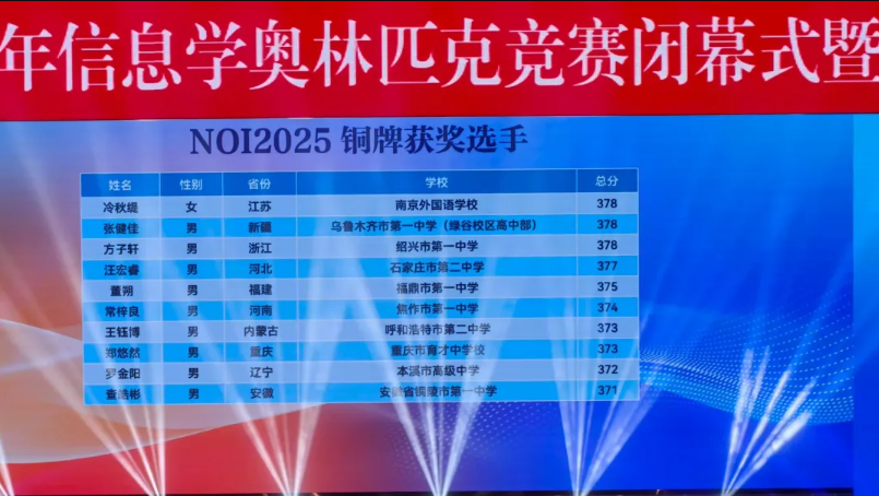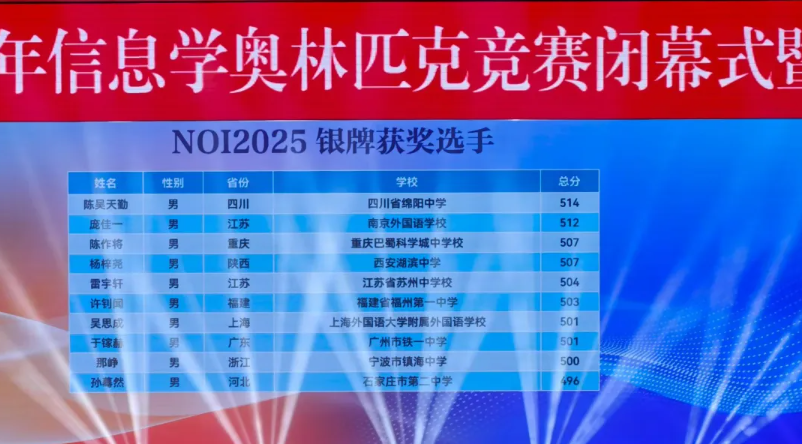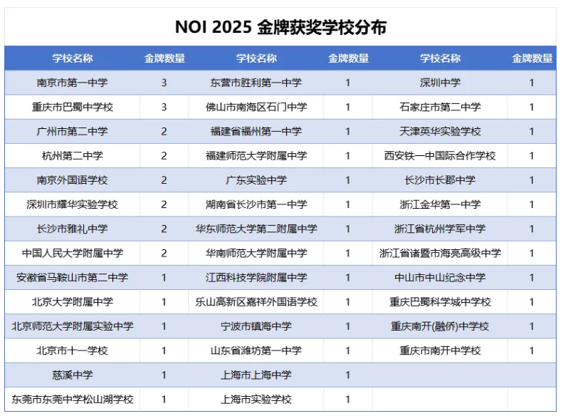 NOI2025:来自江苏的南京市第一中学和重庆市巴蜀中学校斩获3枚金牌,并列位居第一。