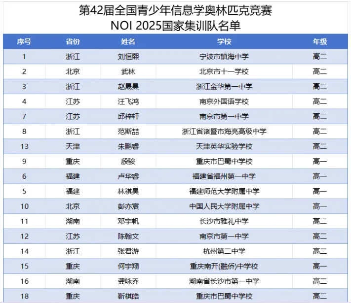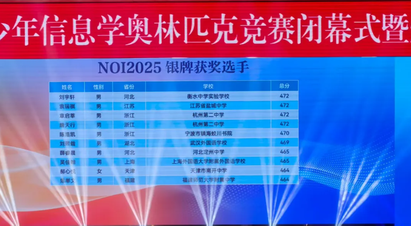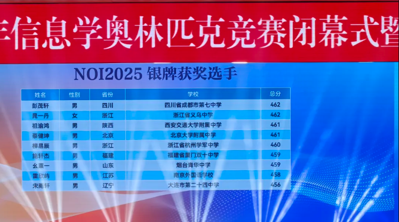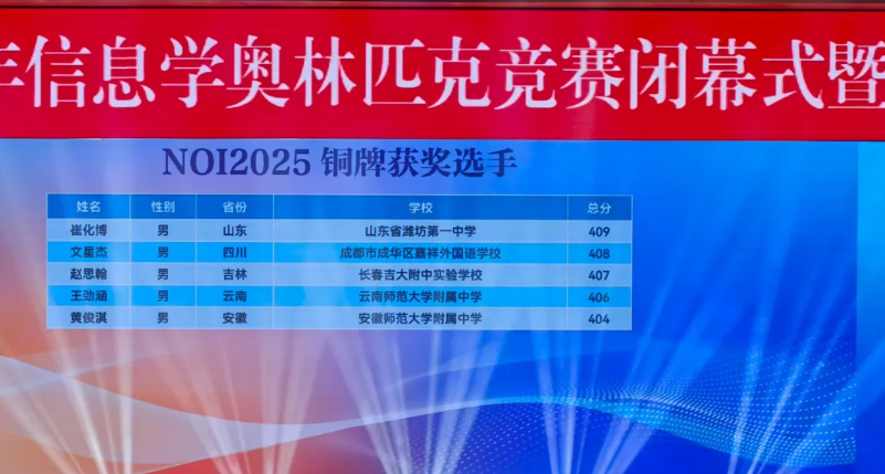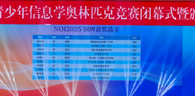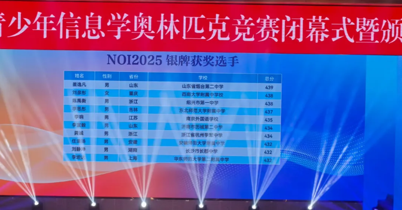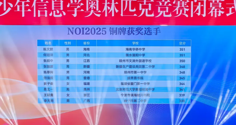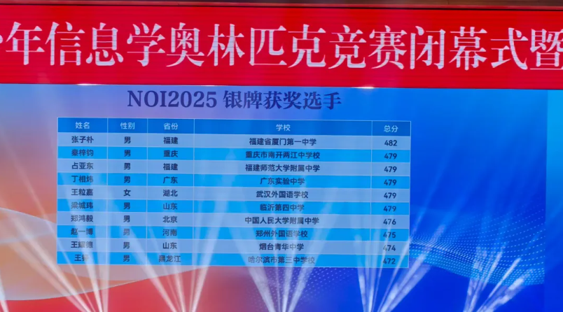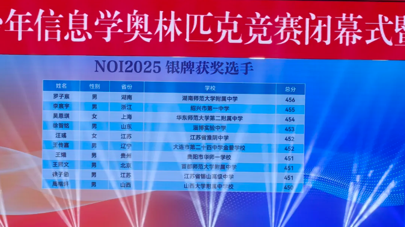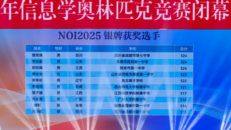 NOI2025:来自江苏的南京市第一中学和重庆市巴蜀中学校斩获3枚金牌,并列位居第一。
